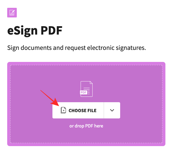 与 Acrobat Web 的产品类似,您还可以在网络上的任何设备上使用 SmallPDF 的 eSign 工具签署文档。要签署 PDF 文件,请转到SmallPDF 上的eSign PDF 页面,然后单击屏幕上的“选择文件”选项。