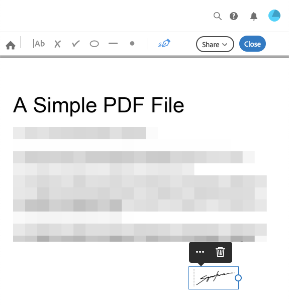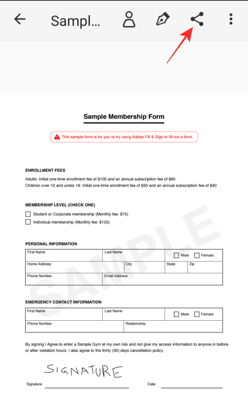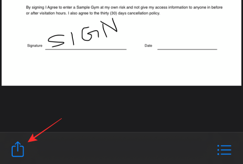 对签名文档进行所有修改后,它将自动保存在您的设备上。您可以通过点击顶部的共享图标来共享此 PDF 文件。