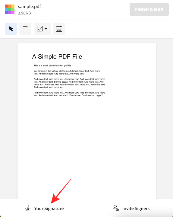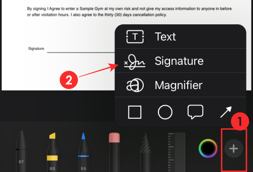 要添加您刚刚创建的签名,请点击顶部工具栏中的钢笔图标。