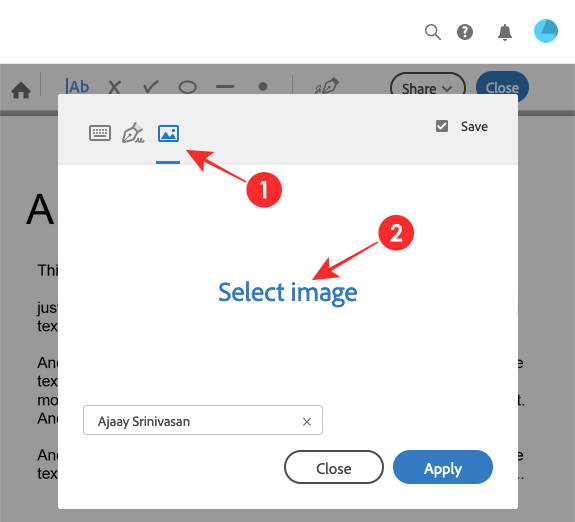 要从图像上签名,请单击屏幕上的“选择图像”选项。