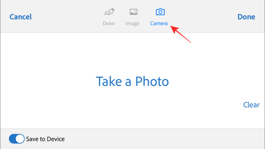 如果要从已签名的文档中添加签名,请点击顶部的“相机”选项卡,拍摄签名图片,然后点击“完成”。