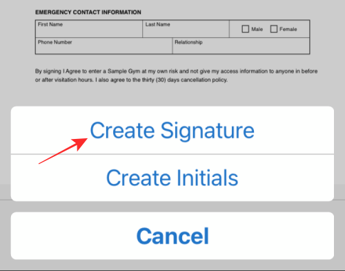 现在将要求您选择带有您签名的图像。从您的库中点击签名图像。
