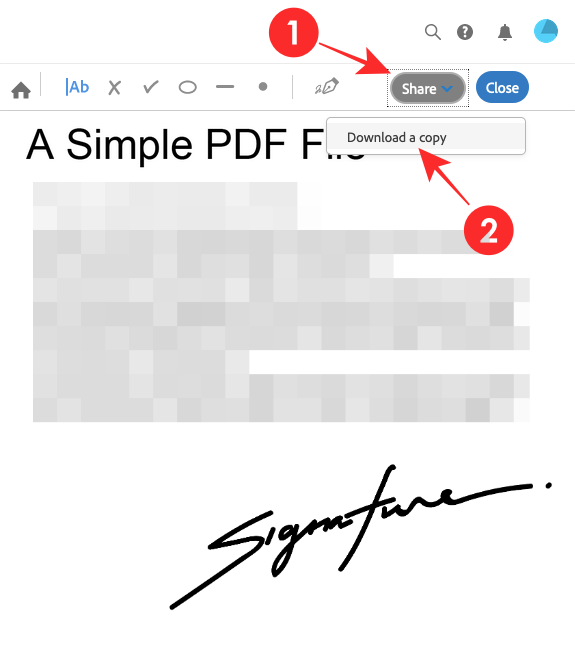 对 PDF 进行最后润色后,单击顶部的“共享”按钮,然后选择弹出的“下载副本”选项。