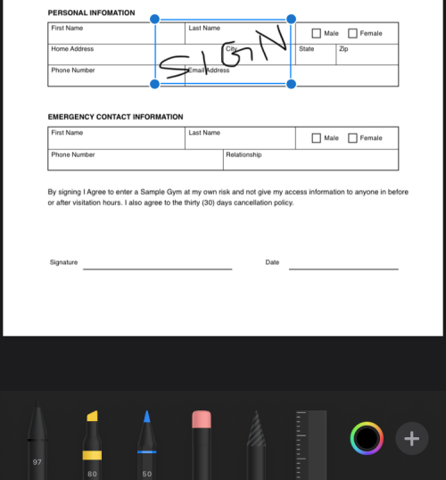 您可以使用 iPhone 的本机标记工具将签名添加到您的 PDF 文档或使用 Adobe Fill & Sign 应用程序。