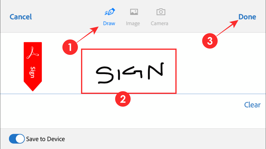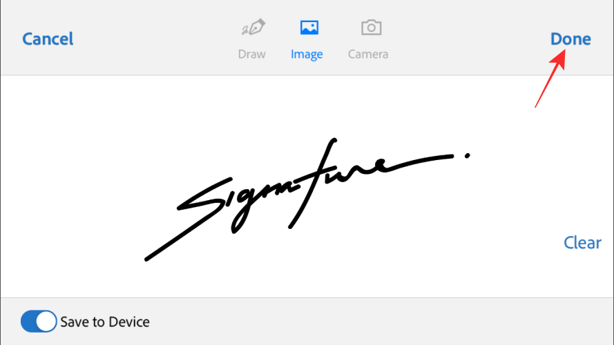 也许最有用和首选的选项是能够添加您之前保存为图像的自己的签名。要从图像上签名,请单击左上角的图像图标,然后单击屏幕上的“选择图像”选项。