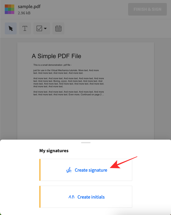 您现在将进入编辑屏幕,您可以在其中为上传的 PDF 文件添加签名或姓名首字母。