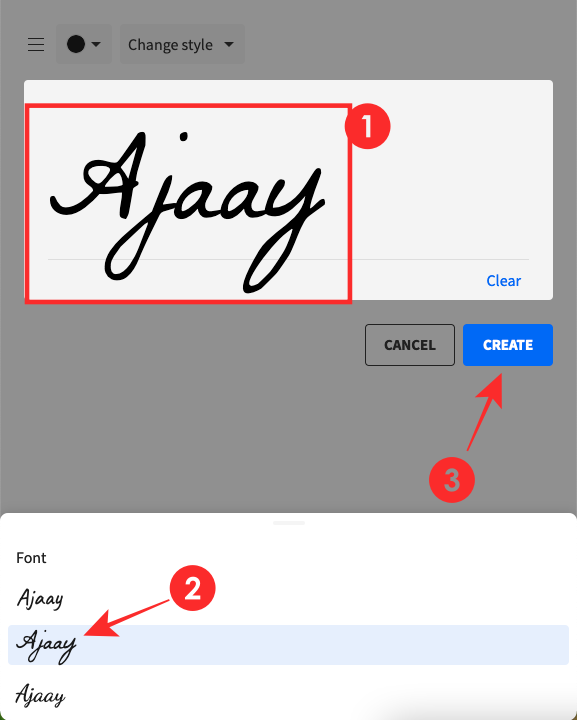 上传您的签名后,它会出现在屏幕上。要将其添加到 PDF 文档,请单击“创建”选项。
