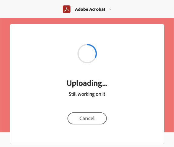 您的 PDF 文件现在将上传到 Adobe Document Cloud。