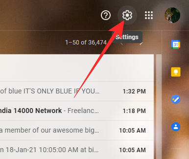 如果您已经有一个有效的 Gmail 帐户,但在您的 PC 上看不到 Meet 边栏,则需要确保它已启用。首先,转到 Gmail 网站并单击右上角的设置图标。