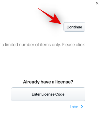 如果您使用的是试用版,您现在将收到一份免责声明,说明 iMazing 试用版上剩余的免费传输次数。点击右上角的“继续”。