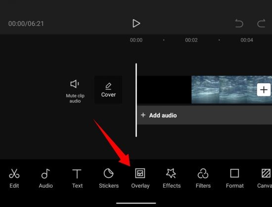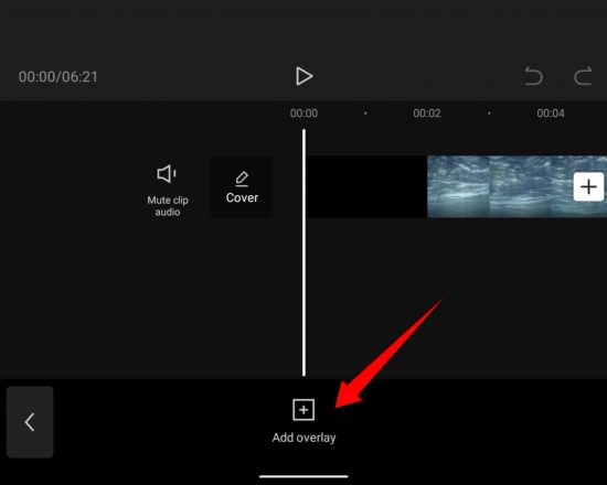 该剪辑现在将添加到您的时间线。点击屏幕底部的“叠加”。