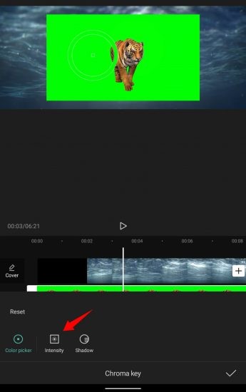 对“阴影”重复上述相同步骤。理想情况下,阴影和强度的混合将帮助您为剪辑获得完美的绿屏效果。