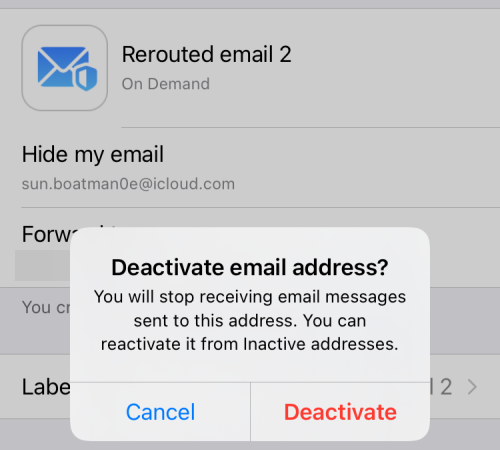 尽管该功能类似于关闭电子邮件转发,但停用地址将阻止来自与特定“@iCloud.com”地址关联的所有服务的未来消息。