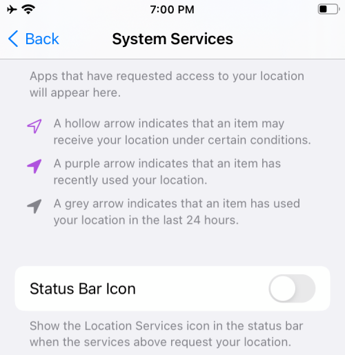 如果您已更新到 iOS 15,您可能还注意到顶部状态栏中显示的位置图标。虽然位置图标应该在您访问需要您行踪的应用程序时出现,但它也可能在您设备的系统服务访问它的其他时间出现。