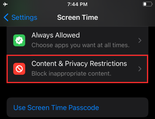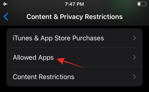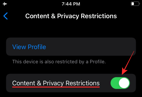在下一个屏幕上,关闭“内容和隐私限制”选项。