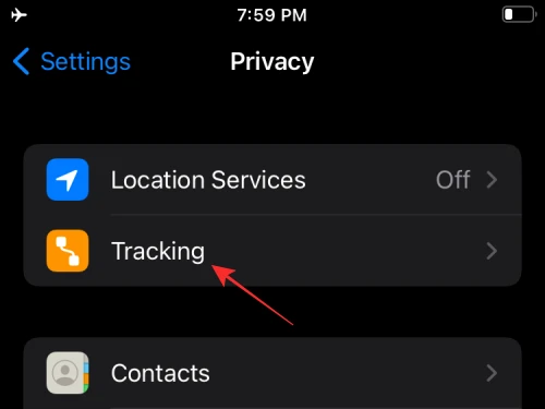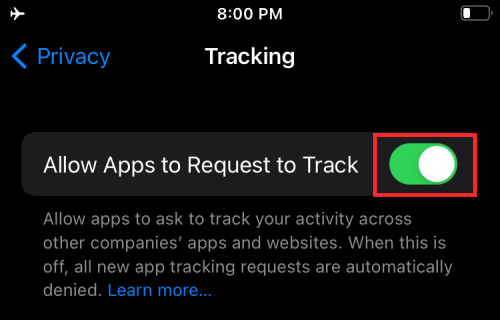 在下一个屏幕上,打开“允许应用程序请求跟踪”功能以限制跟踪限制。