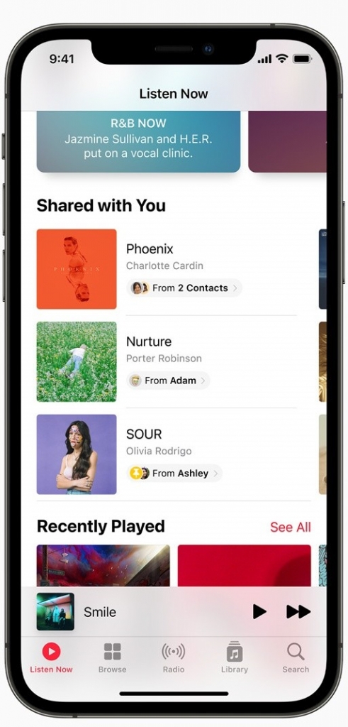 与您共享是具有可共享数据的默认 Apple 应用程序的新类别。当您在 iMessage 中与联系人发送或共享来自此类应用程序的内容时,Apple 会自动将其归类到“与您共享”部分。这将帮助您保持库井井有条,同时确保您可以轻松区分设备上的个人内容和共享内容。这对于共享照片、音乐、文件、播客、新闻报道等非常有用。