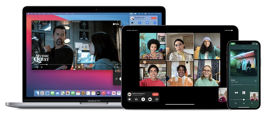 - Apple TV+ – 在 FaceTime 上与人一起观看电影和电视节目。通话中的每个人都可以暂停播放并控制播放的其他方面,用户可以切换到在其他设备(iPad 或 Apple TV)上观看相同的内容。