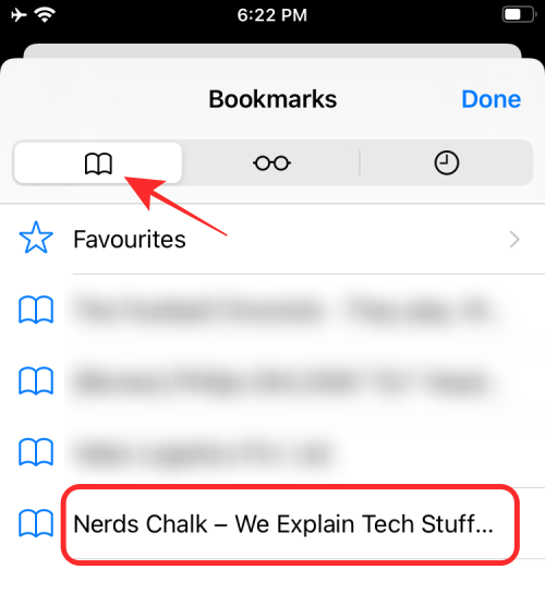 您还可以使用标签栏上的点击并按住手势打开屏幕上的溢出菜单,然后将手指滑过“显示书签”选项以打开屏幕上的书签列表。