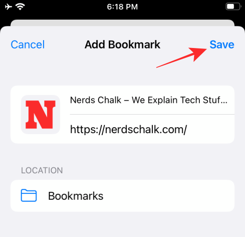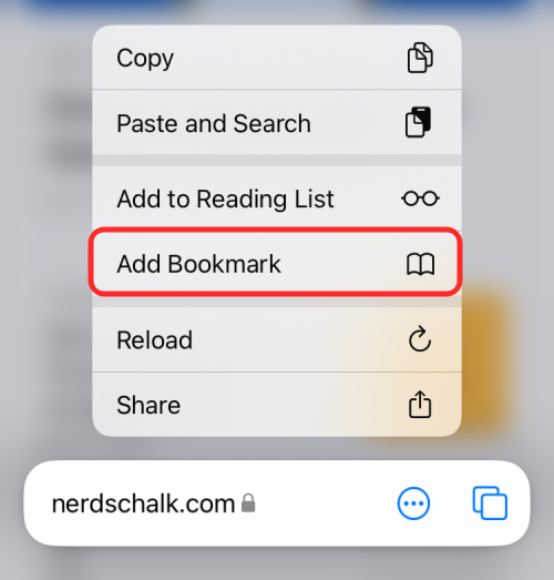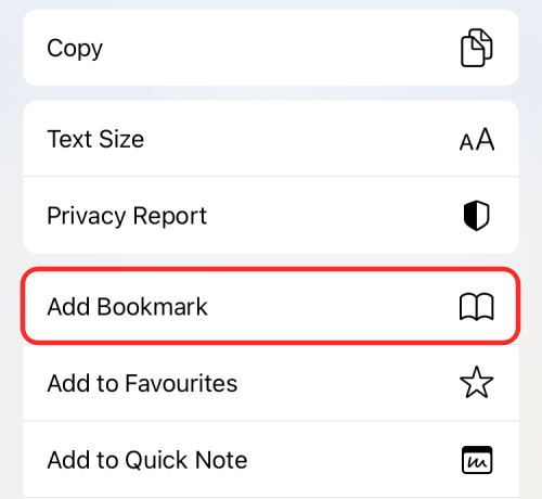 现在屏幕上会出现一个菜单。在此菜单上向下滚动并选择屏幕上的“添加书签”选项。