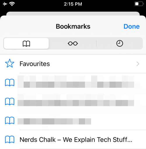 这将在新的弹出屏幕中打开书签、阅读列表和历史列表。要访问您的书签,请点击弹出屏幕顶部的书签选项卡(最左边的那个)。