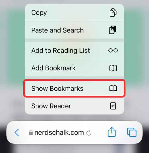 这将在您的屏幕上显示一个溢出菜单。在此菜单上,点击“显示书签”选项。