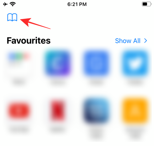 要访问 Safari 中的书签,请确保您在起始页上,然后点击屏幕左上角的书签图标(由书籍标记的那个)。