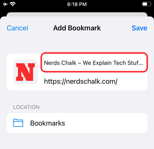 屏幕上应该会出现一个新的“添加书签”弹出窗口。在这里,您可以通过在顶部的第一个文本框中输入您喜欢的名称来重命名书签。