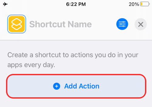 这应该创建一个新的快捷方式。在此屏幕上,选择顶部的“添加操作”选项。
