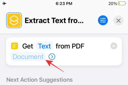 您的快捷方式现已准备就绪。您可以通过点击“从 PDF 获取文本”操作框中的“文档”部分开始使用它。