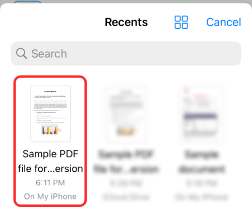 在下一个屏幕上,找到并选择要从中提取文本的 PDF 文档。