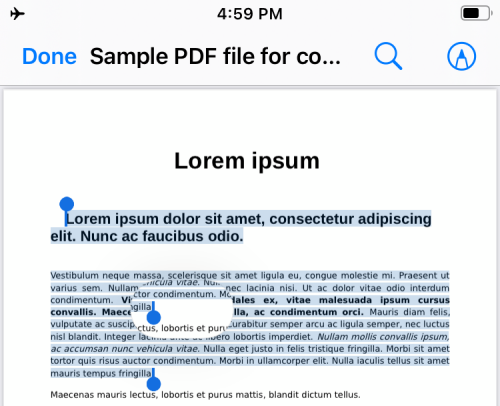 从 PDF 中提取文本的最简单方法是像在任何其他带有文本的应用程序上一样复制它。为此,请打开要从中提取文本的 PDF 文件,然后点击并按住 PDF 上的任意位置,然后开始拖动要复制的文本部分。