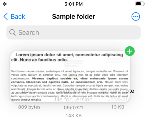 当您这样做时,PDF 现在将关闭,您将在“文件”应用程序中看到 PDF 文件所在的文件夹。现在,转到要创建文本文件的位置。当您到达要显示拖动文本的位置时,抬起手指放下拖动的项目。