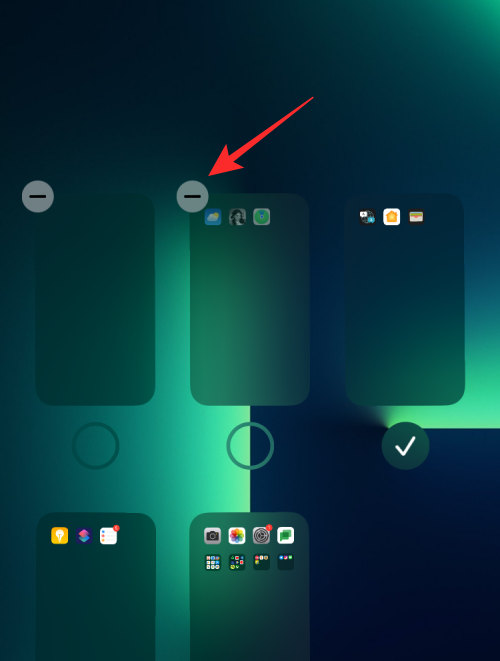 要从主屏幕中删除页面,首先将其隐藏,然后点击要删除的页面左上角的“-”图标。