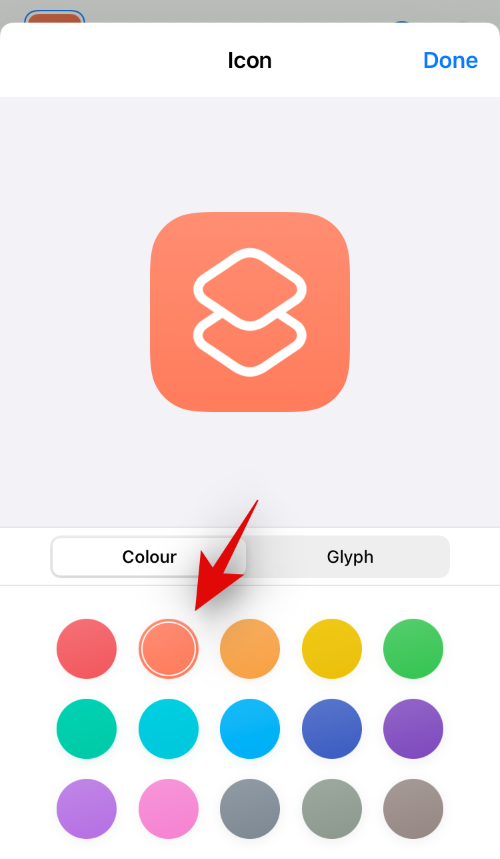 选定的快捷方式现在将添加到您的主屏幕,您选择的字形和应用程序颜色作为其自定义图标。