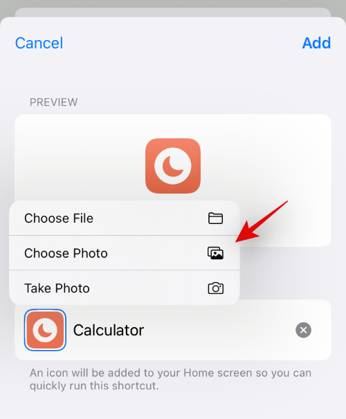 所选照片现在将被设置为您的应用程序图标。您现在可以点击右上角的“添加”。