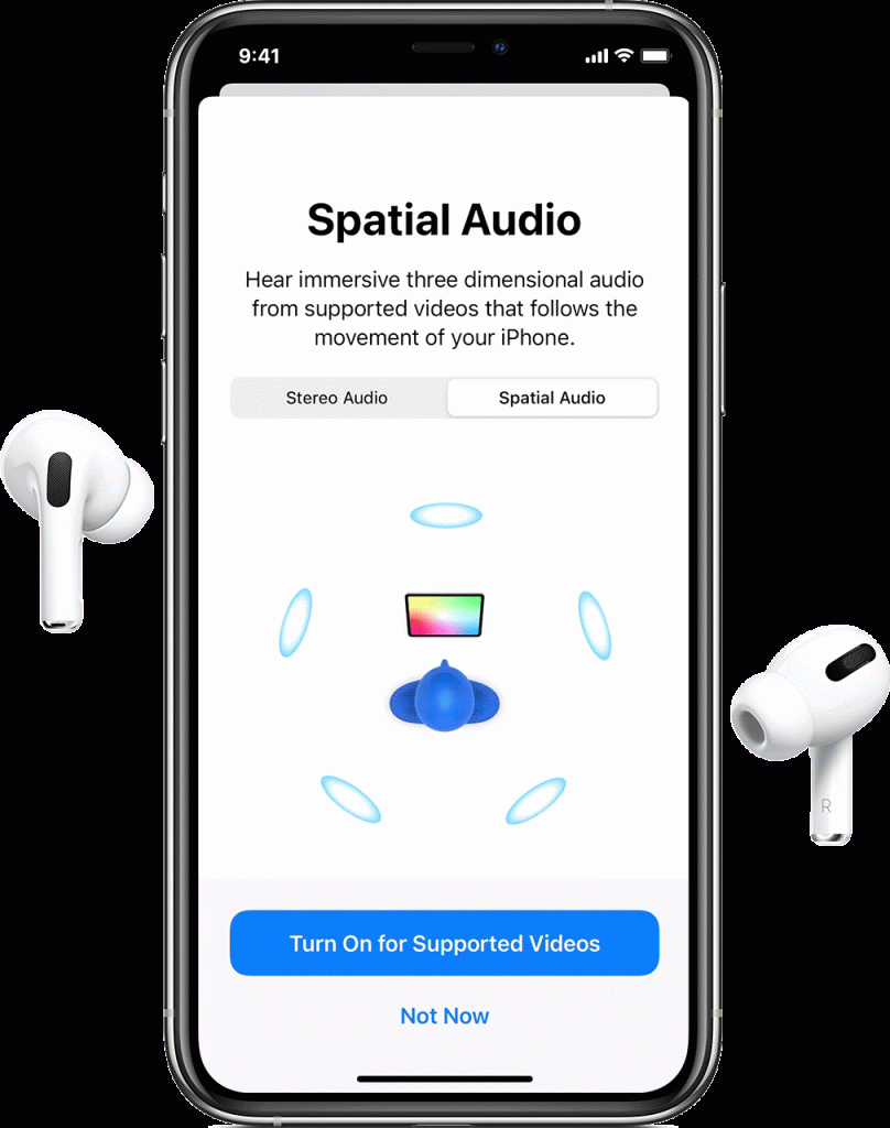 据苹果称,空间音频功能是通过应用定向音频滤波器并调整每只耳朵接收到的声音频率来实现的。这创造了一种空间体验,其中几乎可以从空间的任何地方接收声音。