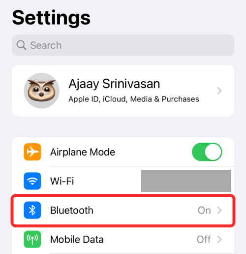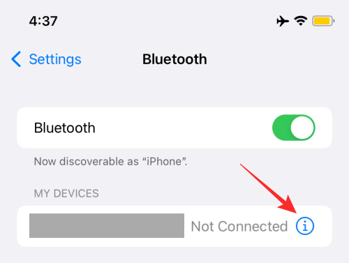 从蓝牙设备列表中找到您的 AirPods Pro 或 Max。点击蓝牙设备旁边的“i”图标。