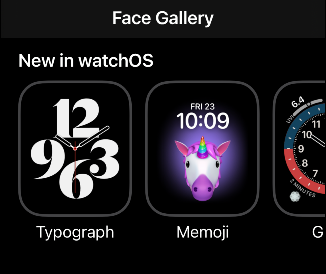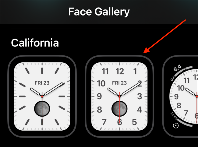 然后,您会在顶部看到新的表盘面以及所有可用表盘面的列表。很棒的是,Face Gallery实际上显示了同一表盘的变体,具有不同的颜色和复杂性。