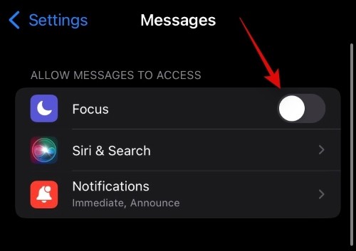 消息应用程序的错误似乎也可能导致此问题。如果您不太热衷于通过消息应用分享您的专注模式,那么您可以关闭该应用的专注以帮助您解决此问题。请按照以下指南开始。