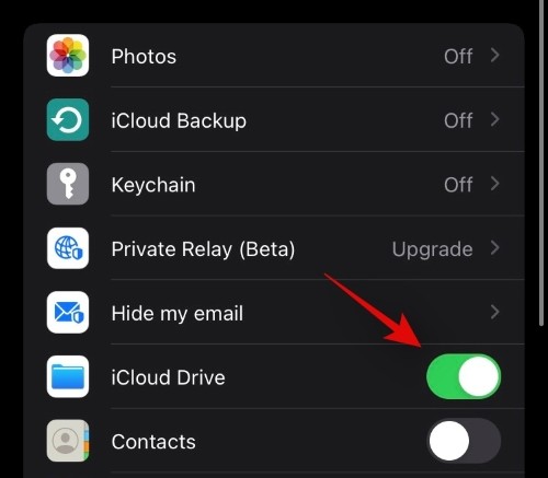 现在根据您的喜好打开或关闭 iCloud Drive 的开关。