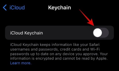 如果您希望停止将密码与 Apple ID 同步,请点击“钥匙串”。点击并关闭顶部的切换。
