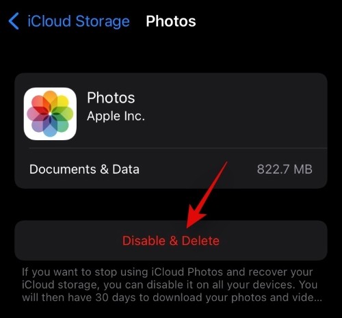 现在点击“禁用和删除”以禁用照片同步并从 iCloud 中删除数据。您的所有数据将在 30 天后删除。