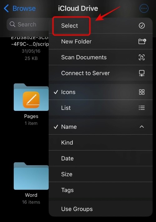 您甚至可以点击右上角的“三点”图标来访问“选择”。这将允许您选择多个文件并一次对其进行更改。