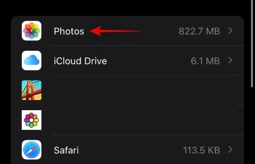 您现在将获得在您的 iCloud 帐户上占用最多存储空间的所有应用程序和位置的列表。点击所需的应用程序来管理其数据。对于本指南,我们将使用照片应用程序。