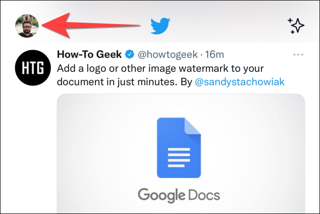 首先,在您的 iPhone 或 iPad 上打开官方 Twitter 应用程序。点击左上角的个人资料图片。