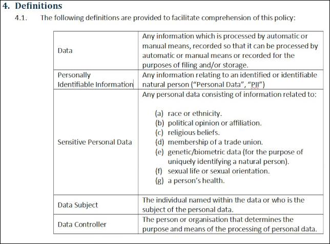 以下是带有自动编号部分和段落编号的文档的屏幕截图。本节包括一个表格,该表格在一个表格单元格中包含一个列表。该文档是在 Word 中创建的,在这里它被加载到 Word 中。