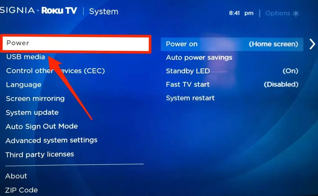 您也可以返回“系统”菜单并选择“系统重启”以关闭 Roku,然后重新打开。