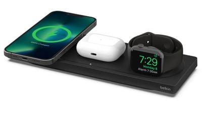 3 合 1 无线充电板专为 Apple 的最新设备设计,为iPhone 12和 13 型号提供MagSafe充电座,最高可以为它们充电 15W(iPhone 12 和 13 mini 为 12W)。它还能够为新的Apple Watch Series 7型号快速充电,并且它是第一款具有快速充电功能的第三方充电器。