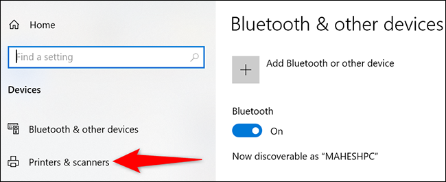 在“设备”页面的左侧边栏中,单击“打印机和扫描仪”。